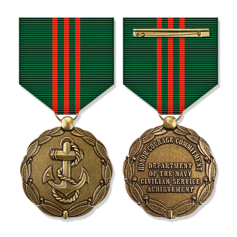 The Navy Civilian achievement medal is officially licensed through Classic Medallics under hallmark number C-31 with the Military Institute of Heraldry Medals.