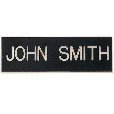 Item Description: 3 X 1 inch black plastic name badge with clutch back finding.