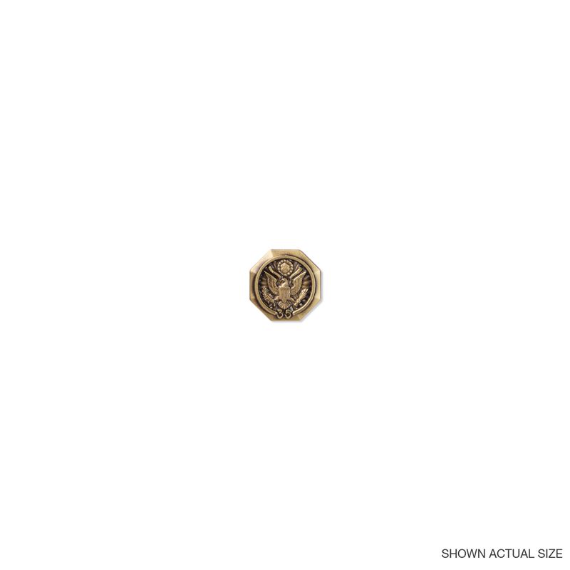 Official Federal Government 35 Years of Service lapel pin featuring 3D modeled eagle design representing the seal of the United States. Octagon shaped pin is approved by the United States Army of Heraldry; their hubs and dies were used to make our dies. Licensed by the Heraldry and made in the United States of America. Gold finish representing 35 years of service. The pin measures 5/8 (height) x 5/8 (width) inches and has a thickness of 2 mm - backing is a non-rotating nail with a quality spring loaded clutch. Every pin in this series, including this one, is licensed under Hallmark number C-31.