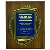 Item Description: 9 x 12 inch genuine walnut plaque comes with a die stamped scroll frame and 6 X 4-1/2 inch laser able color marbleized plate.