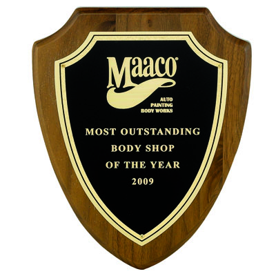 Out of Stock.Item Description: 7-3/4 X 9-3/8 inch walnut finish plaque comes with 6 X 7-1/2 inch laser able black screened brass plate with gold frosted border.
