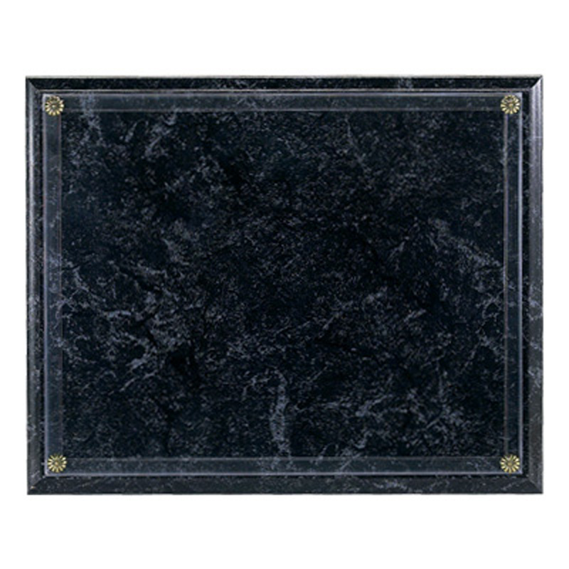 Product Description 10-1/2 inch x 13 inch black marbleized plaque holds 8 1/2 inch x 11 inch certificate on molded plexiglass frame which slides certificate in from side.