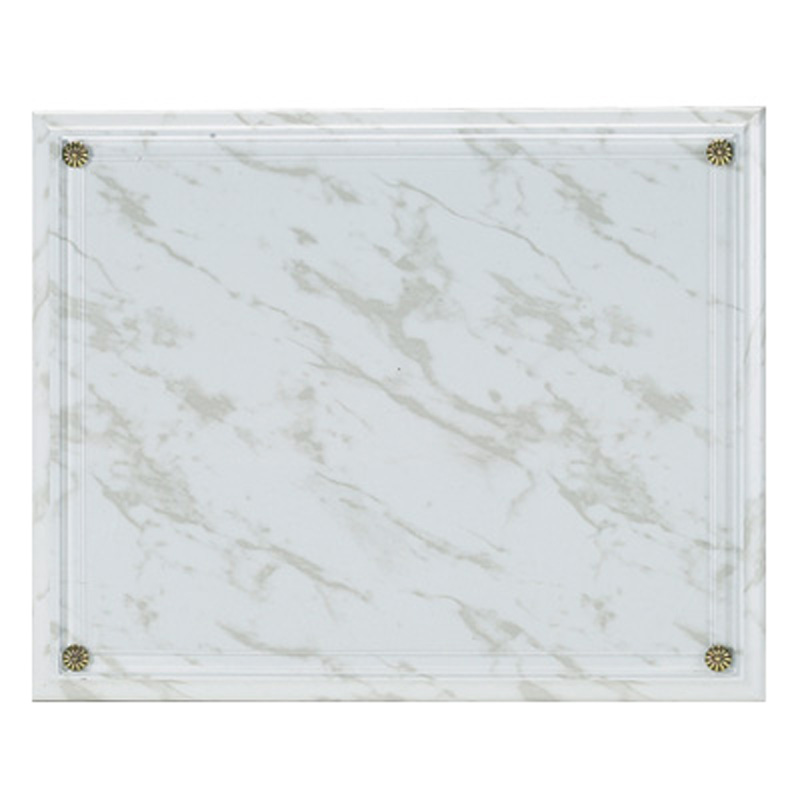 Product Description 10-1/2 inch x 13 inch white marbleized plaque holds 8 1/2 inch x 11 inch certificate on molded plexiglass frame which slides certificate in from side.