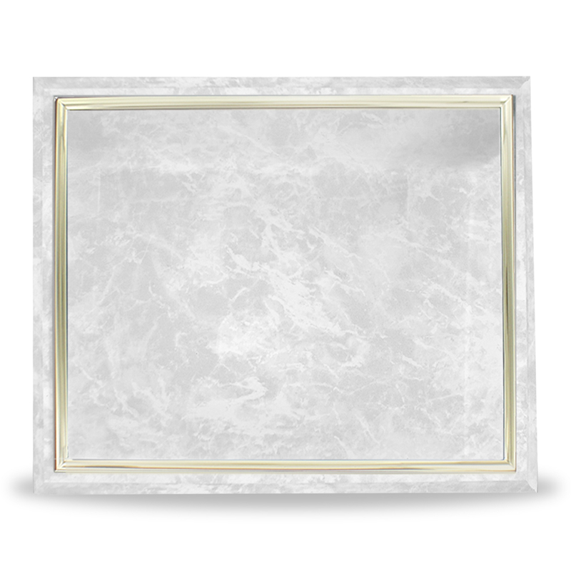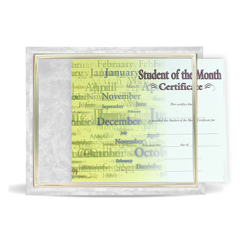 Item Description: 10 1/2 inch x 13 inch white finish plaque holds 8-1/2 inch x 11 inch certificate. Plexiglass frame with
