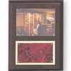 Item Description: 7 x 9 inch walnut finish photo plaque holds a 5 X 3-1/2 inch photo under recessed plexiglass and comes with a 3 x 5 inch laser able red marbleized screened plate.