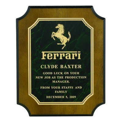 Item Description: 8 x 10 inch walnut veneer plaque comes with 6 X 8 inch laser able marbleized color screened plate with gold frosted border.