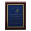 Item Description: 9 x 12 inch walnut finish plaque comes with 6 X 9 inch laser able color screened plate inside an embossed plastic frame.
