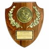 Item Description: 10 x 12 inch genuine walnut shield plaque comes with 4 inch high relief Department of Justice medallion, two antique brass metal wreaths and 5 x 2-3/4 inch satin brass plate with black screened borders.