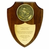 Item Description: 9-1/2 x 12 inch Department Of Justice genuine walnut shield plaque with 4 inch high relief medallion and engraved brass plate.