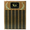 Item Description: 8 x 10 inch walnut finish plaque comes with 6 x 8 inch frosted borders color plate.Item Description: 16 x 22 inch multiple plate walnut veneer plaque with 2 gold cast wreaths and 75 black screened name plates for engraving.