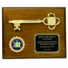 Item Description: 8 x 10 inch genuine walnut plaque comes with metal key mount, 3 x 4 inch black screened plate, metal wreath, and takes 2 inch medallion insert.