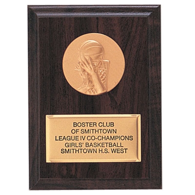 Item Description: 4-1/4 X 6 inch walnut finish plaque comes with gold engraving plate and takes 2 inch medallion insert.