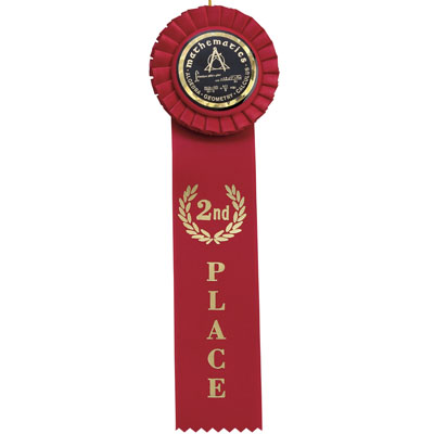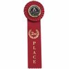 Item Description: 3 inch stock rosette, 2 inch x 10 inch single streamer, 2 inch Mylar hologram medallion.
