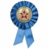 Item Description: Blue rosette award ribbon with 2 inch mylar insert and recognition card on backside. Size is 6 inch (length) x 3-1/2 inch (width). Pin back ribbon and poly bagged.