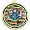 This variant of 2-1/4 inch in diameter gold medal is printed on its front side with a Mylar image of a colorful lyre over an open book of sheet music with a similarly patterned background. The medal is available in gold only, however, the back side has space for custom imprinting or engraving.