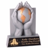 Item Description: 6-1/2 inch height hand painted globe and hands trophy figure, comes with 4-1/2 x 1-1/4 inch black screened brass laser engrave-able plate.