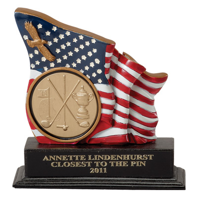 Out of StockItem description: 5-1/2 inch hand painted resin American flag/eagle trophy, comes a 4-1/8 x 3/4 inch black laser-able engraving plate.