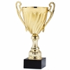 Item description: 14-1/4 inch trophy height swirl gold metal trophy cup on black marble base. Comes with 3-1/2 x 2 inch black engraving plate.