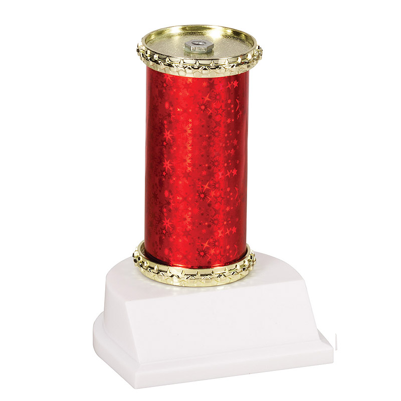 Item Description: 11 inch length round plastic Star sparkle red trophy column.