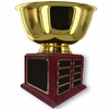 Item Description: 10 inch diameter high polished gold finish bowl perpetual trophy mounted on rosewood finished base. Trophy height from top to bottom is 10-1/2 inch. Bowl diameter is 10 inch. This trophy comes with black screened brass engraving plates (1 big plate and 24 small name plates). Plates are already attached as shown above.