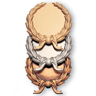 3-1/4 inch gold metal laurel wreath holds 2 inch insert.