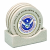 Item Description: 3 3/8 inches in diameter sand color cast stone coaster set of 4 holds 2 inch medallion insert, cork bottom. Please select your inserts below.