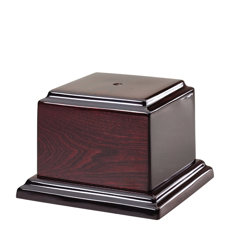 Item Description: High gloss rosewood piano finish base for cup bowl figure. Base dimensions: 5-3/4 x 5-3/4 x 1 inch. Block dimensions: 4-1/2 x 4-1/2 x 3 inch. Platform: 3-3/4 x 3-3/4 inch.