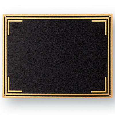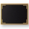 5 1/2 inch x 7 1/2 inch black screened plate with gold border.