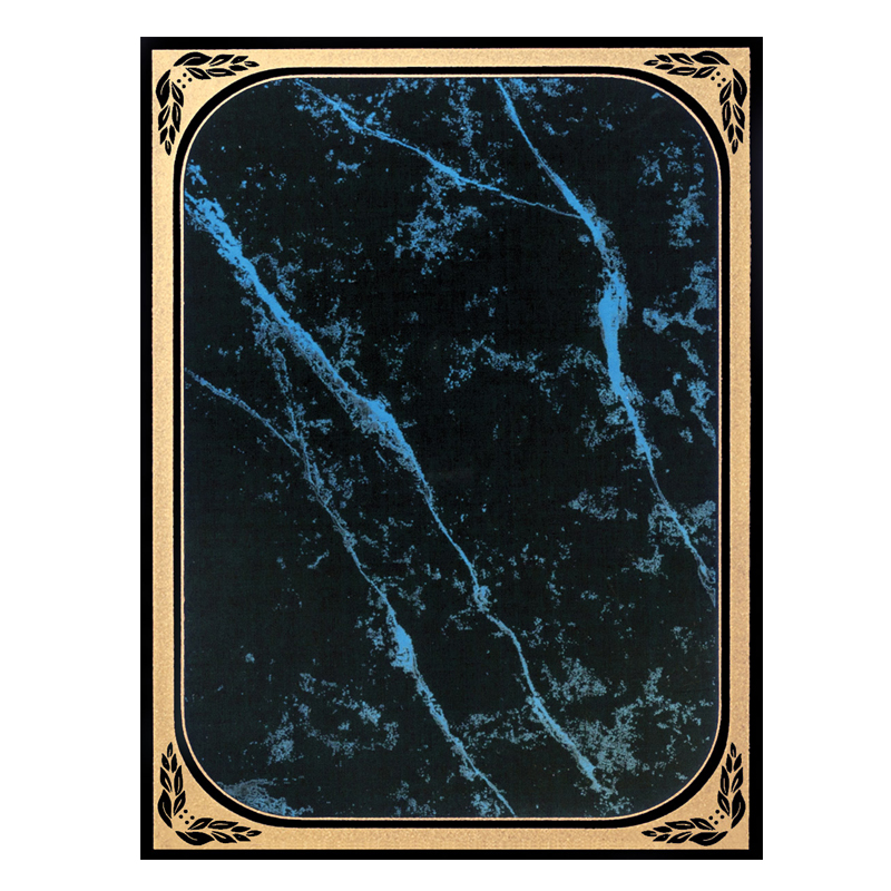 Item Description: 7 x 10 inch blue marbleized brass plated steel with gold frosted border.