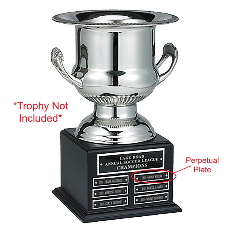 2-/7/8 x 5/8 inch black and silver perpetual engraving plate. The plate features a silver border and two holes, one on each side. Black plate engraves silver. Engravable with up to 1 line. Perpetual plate is compatible with TR7218.