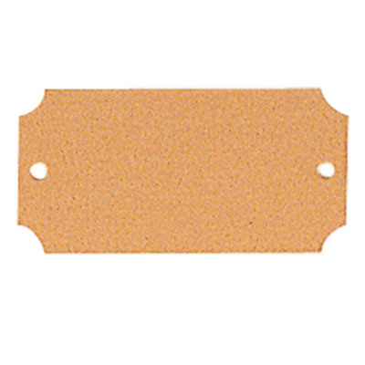 2-1/2 inch x 1-1/4 inch satin brass plate with notched corners and 2 holes.