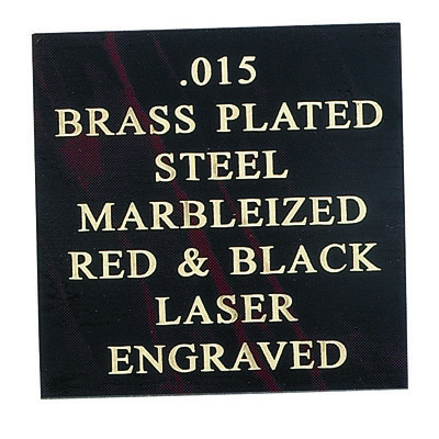 12 inch x 24 inch marbleized red/black brass plated steel, .015 thick for laser engraving.
