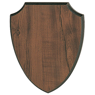 Item Description: 7-5/8 inch x 9-3/8 inch simulated walnut finish shield plaque with 1/4 bevel.