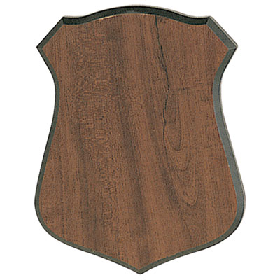 9 inch x 11-1/2 inch simulated walnut finish shield plaque with 1/4 bevel.