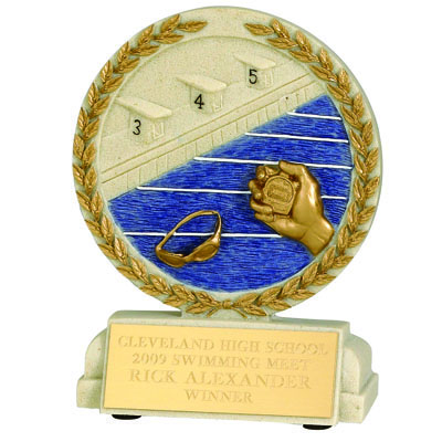 5-1/2 X 4-1/2 INCH SWIMMING STONE RESIN TROPHY - NO PLATE