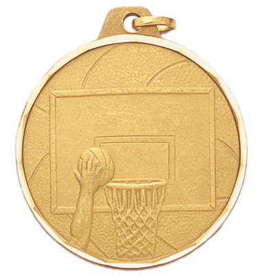 1-1/2 Inch Die-Struck Basketball Themed Medal in Gold, Silver, or Bronze